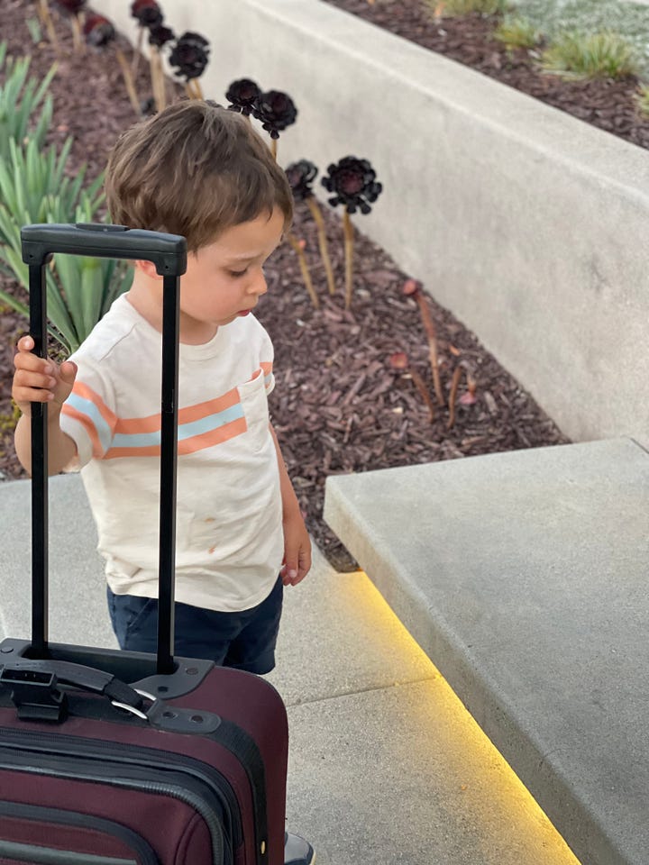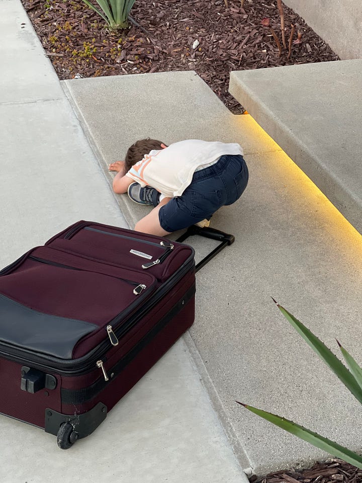 Even better, we walk along our street at night with our luggage, as we head to another airport.